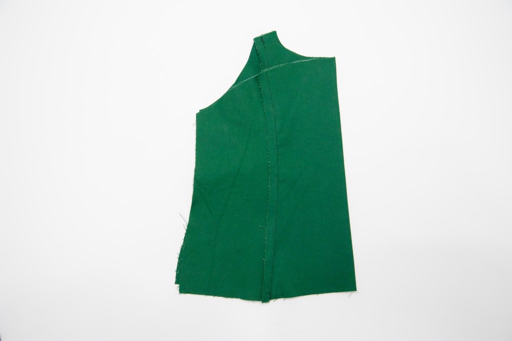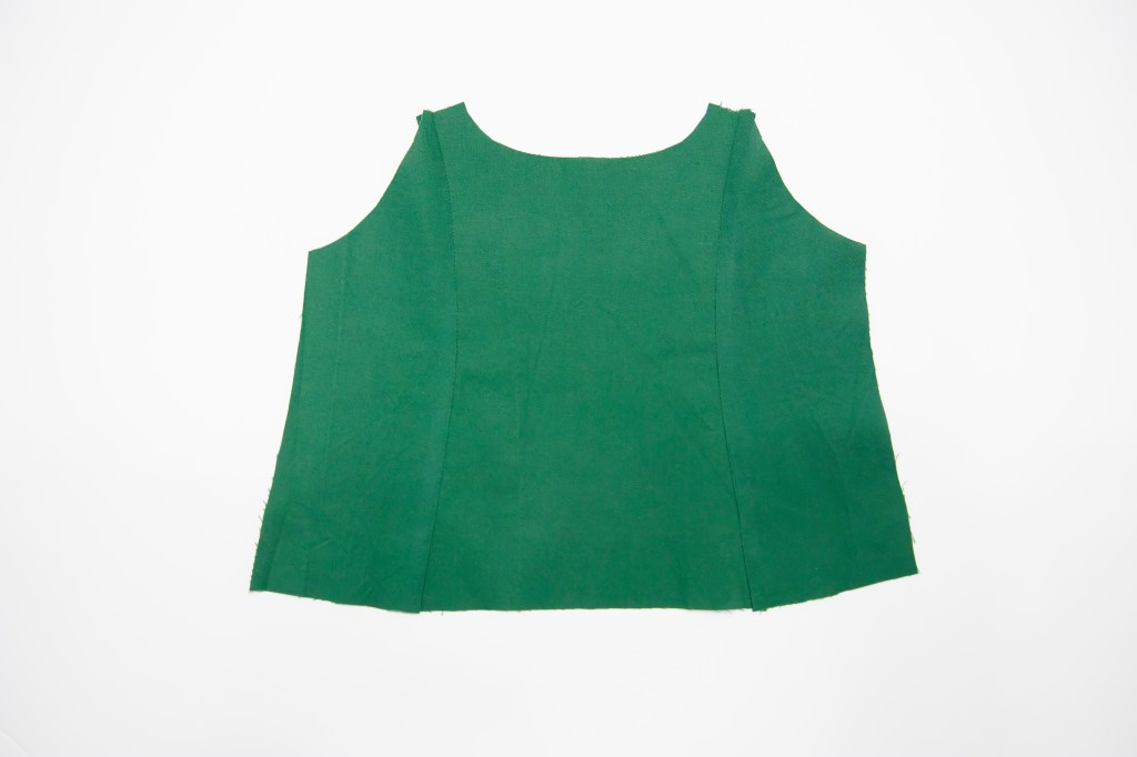 Then I folded those pieces in half and drew a gentle curve from the top center down to the arm hole.