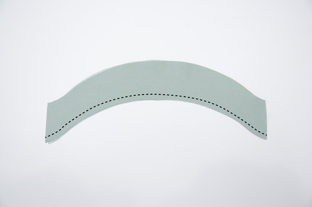 Cutting out two pieces of fabric from the light blue satin, I placed them on top of each other, right sides together, and sewed along the bottom curve.