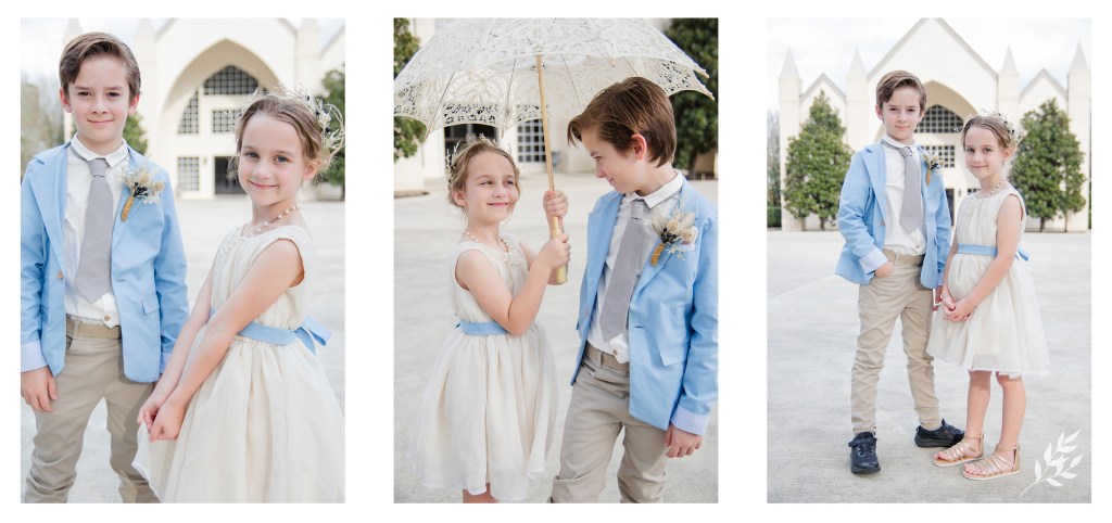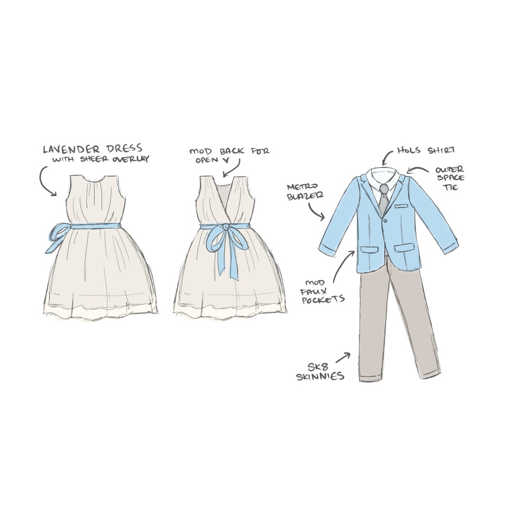 My family is usually very casual. If you visit us on the weekend, the chances us of still all being in our pajamas is very high. But my kids love to dress up in their best whenever they have reason to, and I enjoy trying out new patterns and sewing techniques. After sketching out a few ideas, I settled on a wedding theme with ivory and pale blue tones.